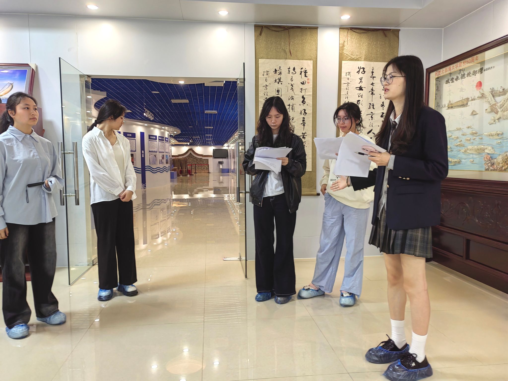 在文化传承与知识传播的征程中,讲解员宛如熠熠生辉的桥梁,一头连接着深厚的文化资源,另一头则通向求知若渴的观众。为进一步提高讲解员业务技能,检验讲解水平,确保讲解服务始终维持在高标准、高水平,3月23日,讲解团在校史馆、海洋文化博物馆精心组织现场讲解考核活动,档案馆馆长陈一红到场进行指导,现场氛围紧张又热烈。