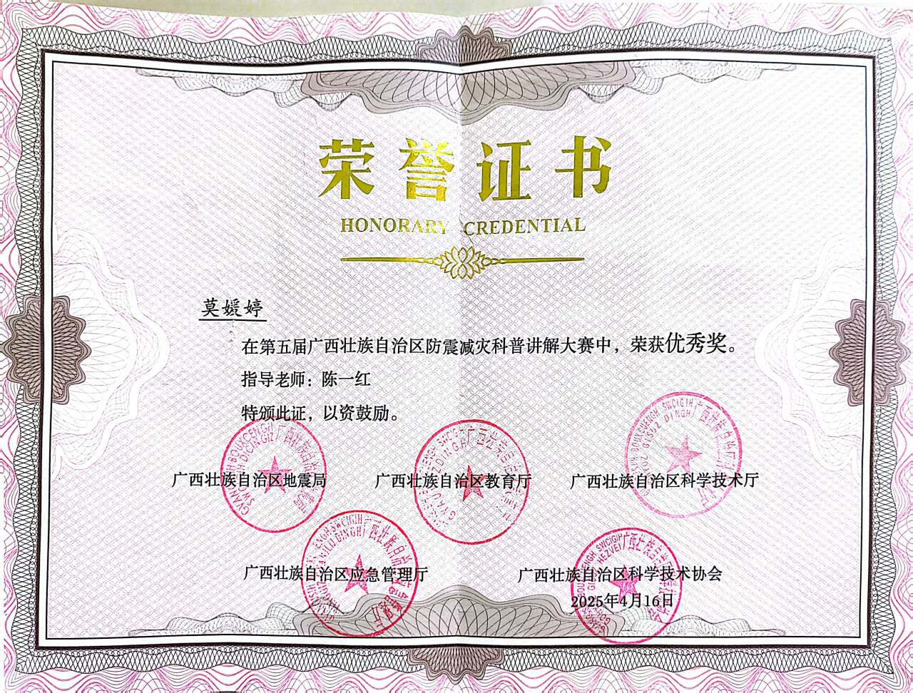 校史馆讲解员荣获第五届广西防震减灾科普讲解大赛优秀奖