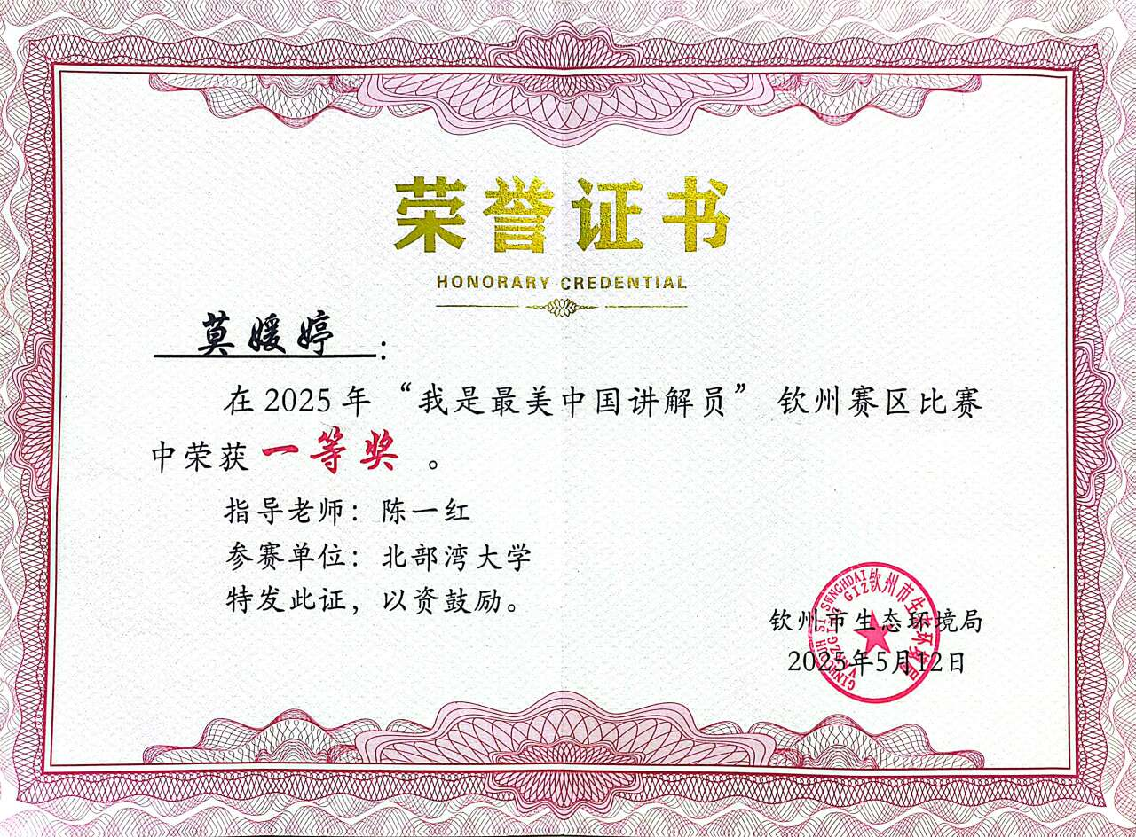 校史馆讲解员莫媛婷获“我是美丽中国讲解员”钦州赛区一等奖